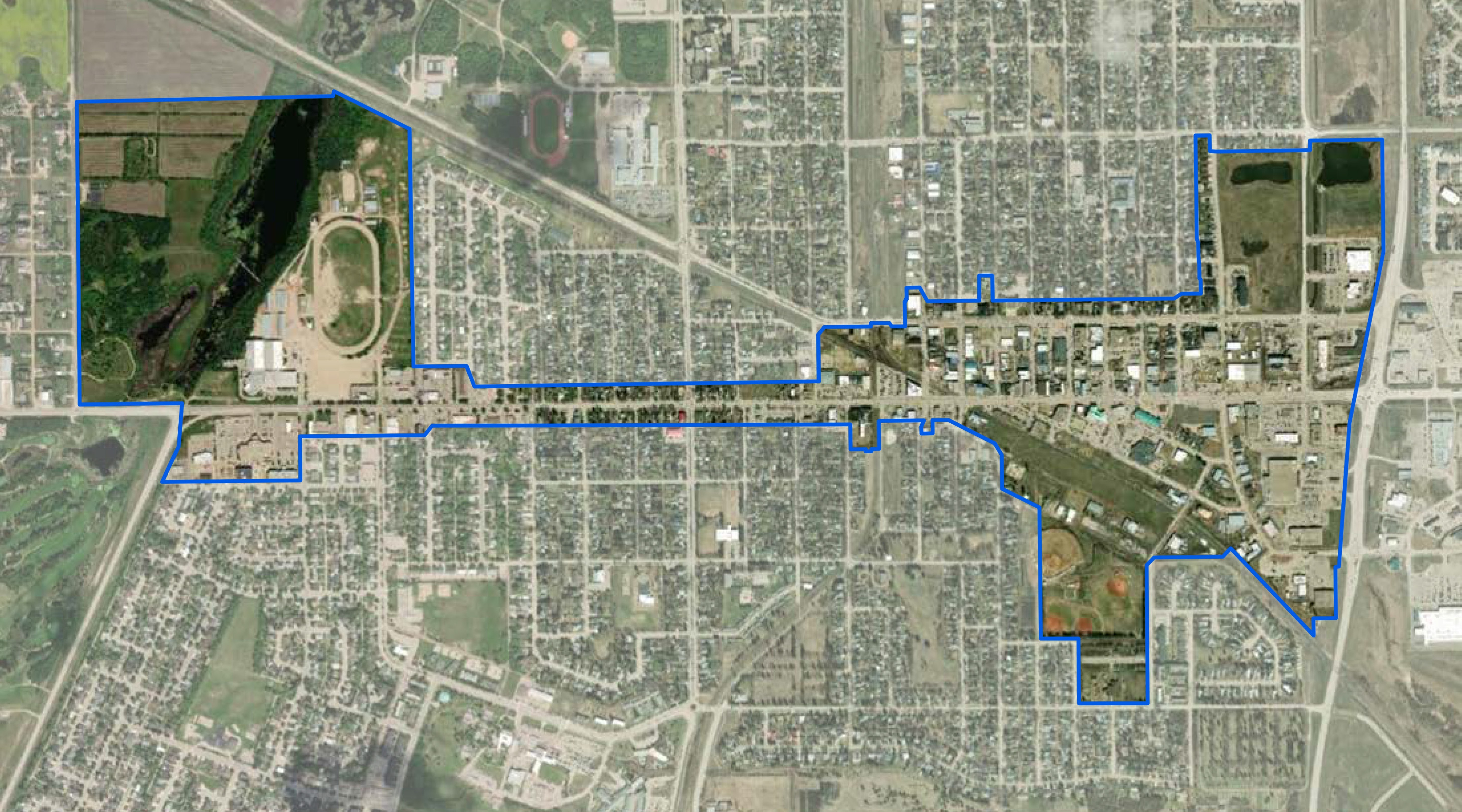 The project area currently includes Downtown Yorkton and the West Broadway Corridor, encompassing commercial areas, transition zones, rail-adjacent lands, and key connections to surrounding neighbourhoods.