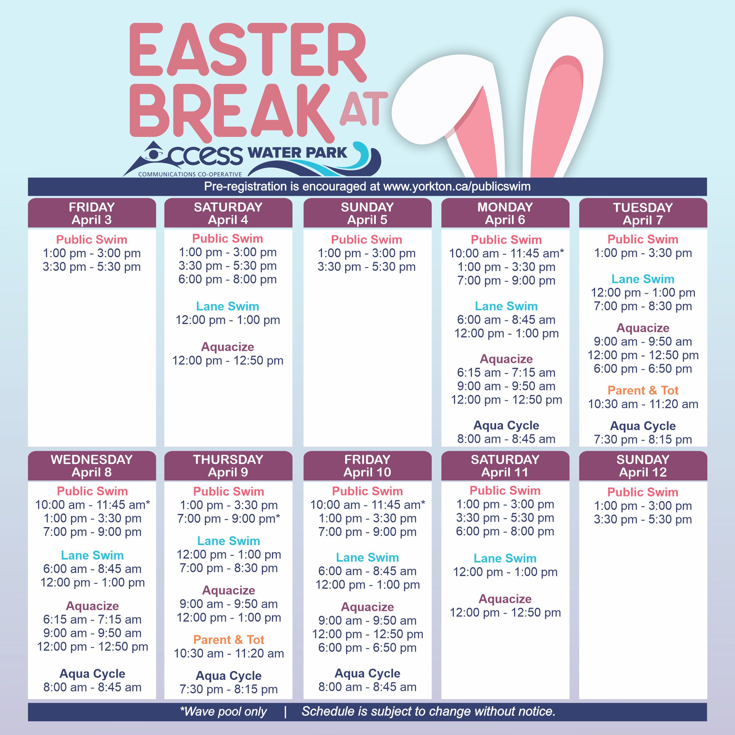 Hop into an egg-citing Easter Break in Yorkton! This holiday season is packed with fun for the whole family, from spending time at the Access Communications Water Park to egg hunts and drop-in sports. There's something for everyone to enjoy!